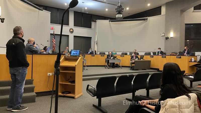 Meeting of aldermen in the City Council Chambers of Elmhurst City Hall at 209 N. York, using social distance protocols during the Covid-19 pandemic.Photograph Details