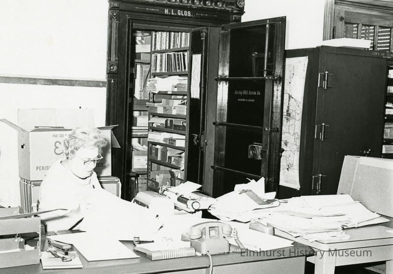 Elmhurst City Hall at 120 E. Park Avenue (Glos Mansion) with H.L. Glos's safe in background.Photograph Details