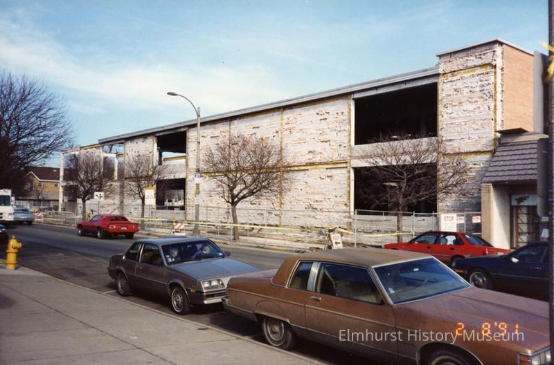 On back: Construction of Elmhurst City Hall / looking northeast. 1991 / 209 N. York St.