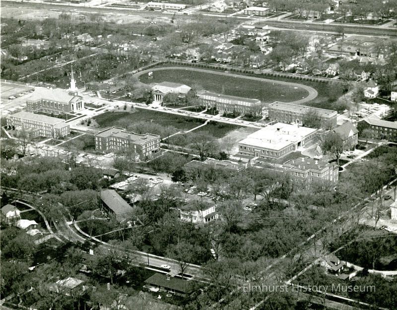 Aerial view of the Elmhurst College Campus, looking northwest.