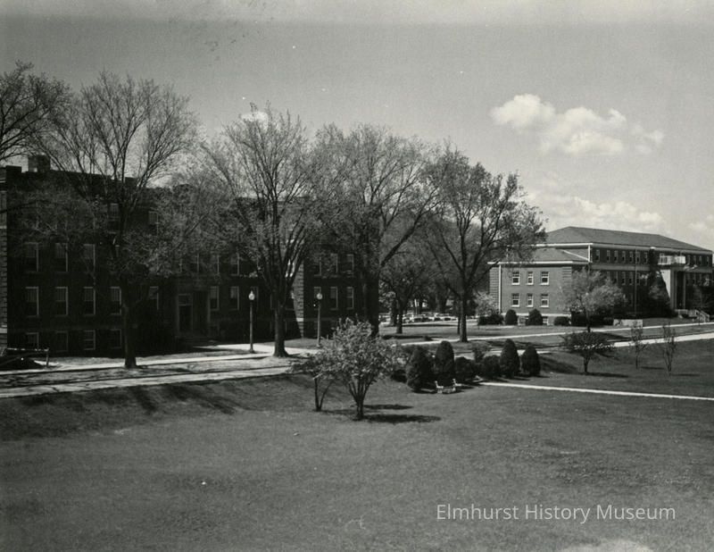 Dinkmeyer and Schick Halls at Elmhurst College taken from northeast corner of student union building.Photograph Details