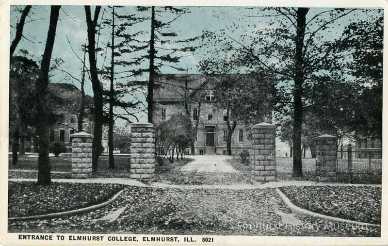 Printed on the front in black in bottom left corner "Entrance to Elmhurst College, Elmhurst, Ill. 5021."