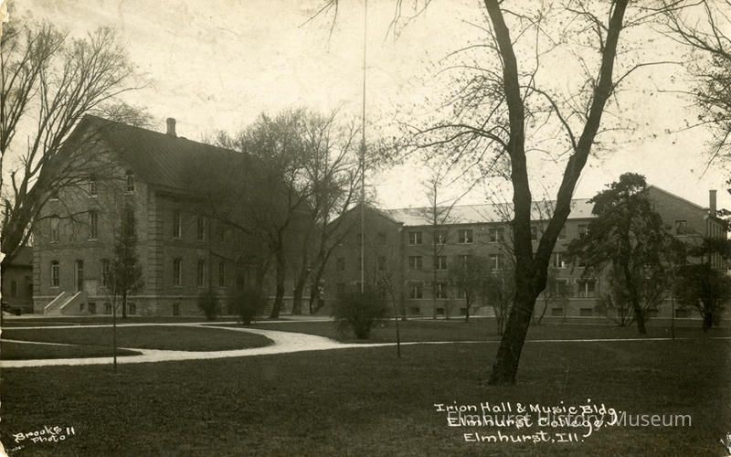 Handwritten on lower left front: Irion Hall & Music Bldg. Elmhurst College Elmhurst, Ill.