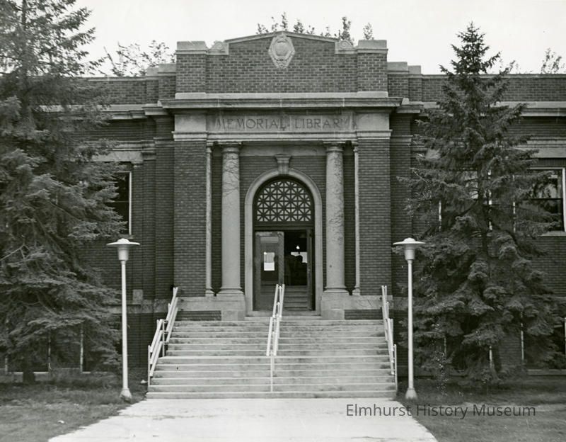 Entrance to Memorial Library at Elmhurst College. The building was constructed in 1921.