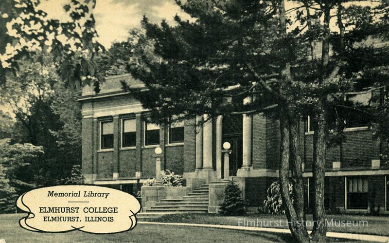 Memorial Library building at Elmhurst College.