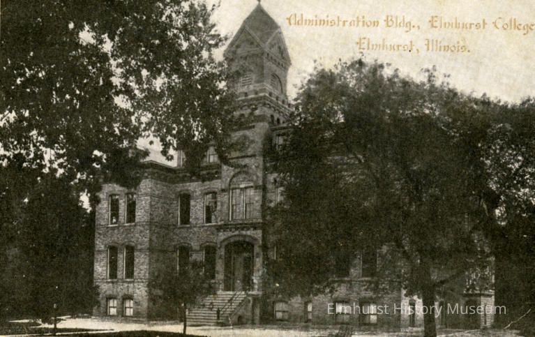 Printed in gold on upper right front: Administration Bldg., Elmhurst College, Elmhurst, Illinois