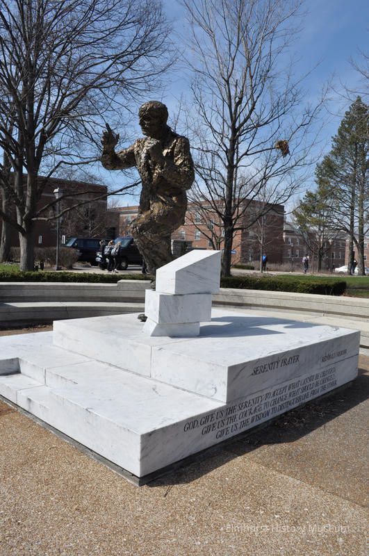 Reinhold Niebuhr Monument on the Elmhurst College campus. Written on the side of the statue base is the Serenity Prayer written by Niebuhr. Monument was sculpted by Robert Berks and was dedicated in 1997.Photograph Details