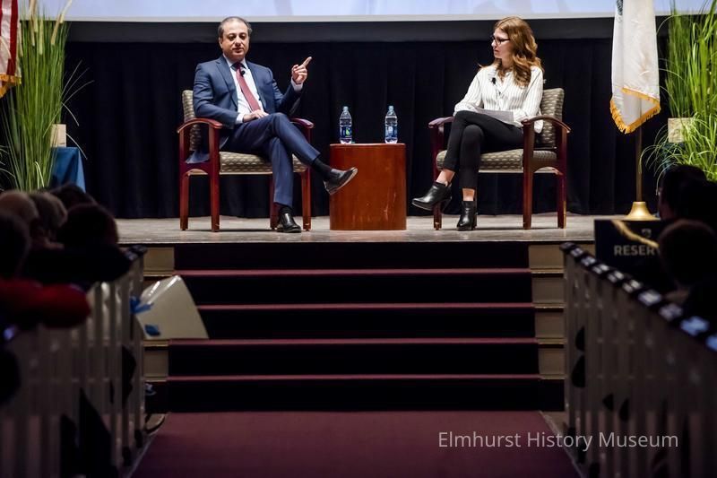 Elmhurst College Rudolf G. Schade Lecture on History, Ethics, and Law, featuring a conversation with former U.S. Attorney Preet Bharara and Philosophy Department Chair Katrina Sifferd. Taken in Hammerschmidt Chapel.Photograph Details