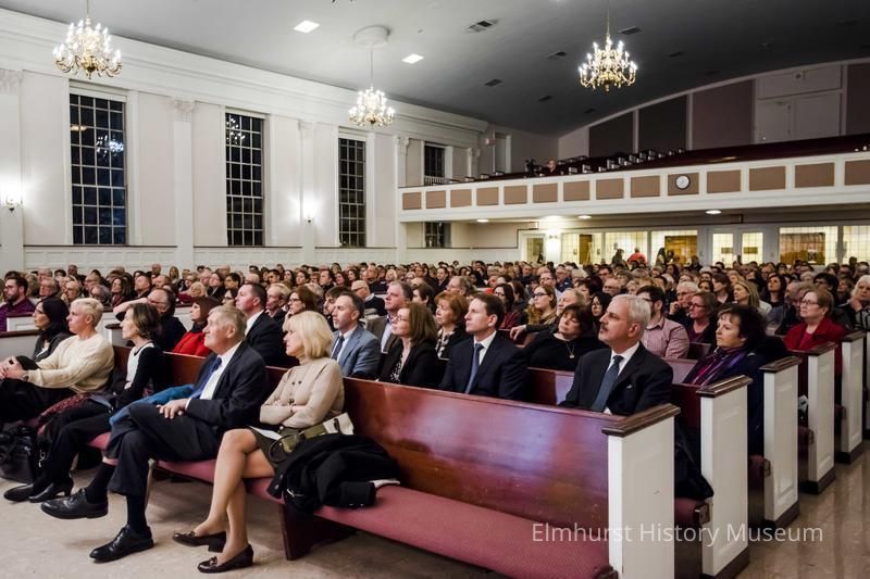 Elmhurst College Rudolf G. Schade Lecture on History, Ethics, and Law, featuring a conversation with for U.S. Attorney Preet Bharara and Philosophy Department Chair Katrina Sifferd. Taken in Hammerschmidt Chapel.Photograph Details
