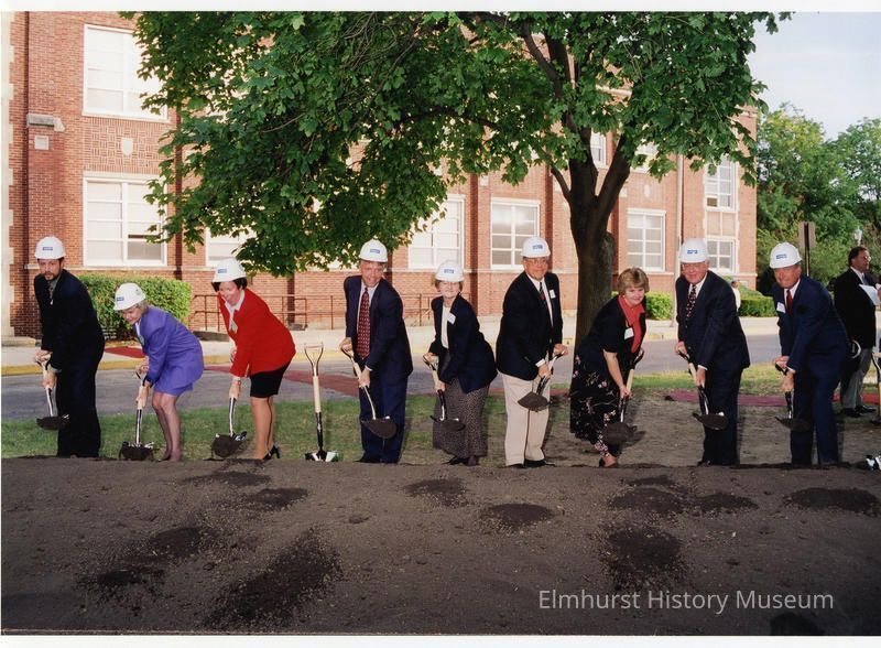 Elmhurst Community School District 205 school board members and staff members. The ground-breaking ceremony for a major remodel/expansion project at York Community High School.Photograph Details
