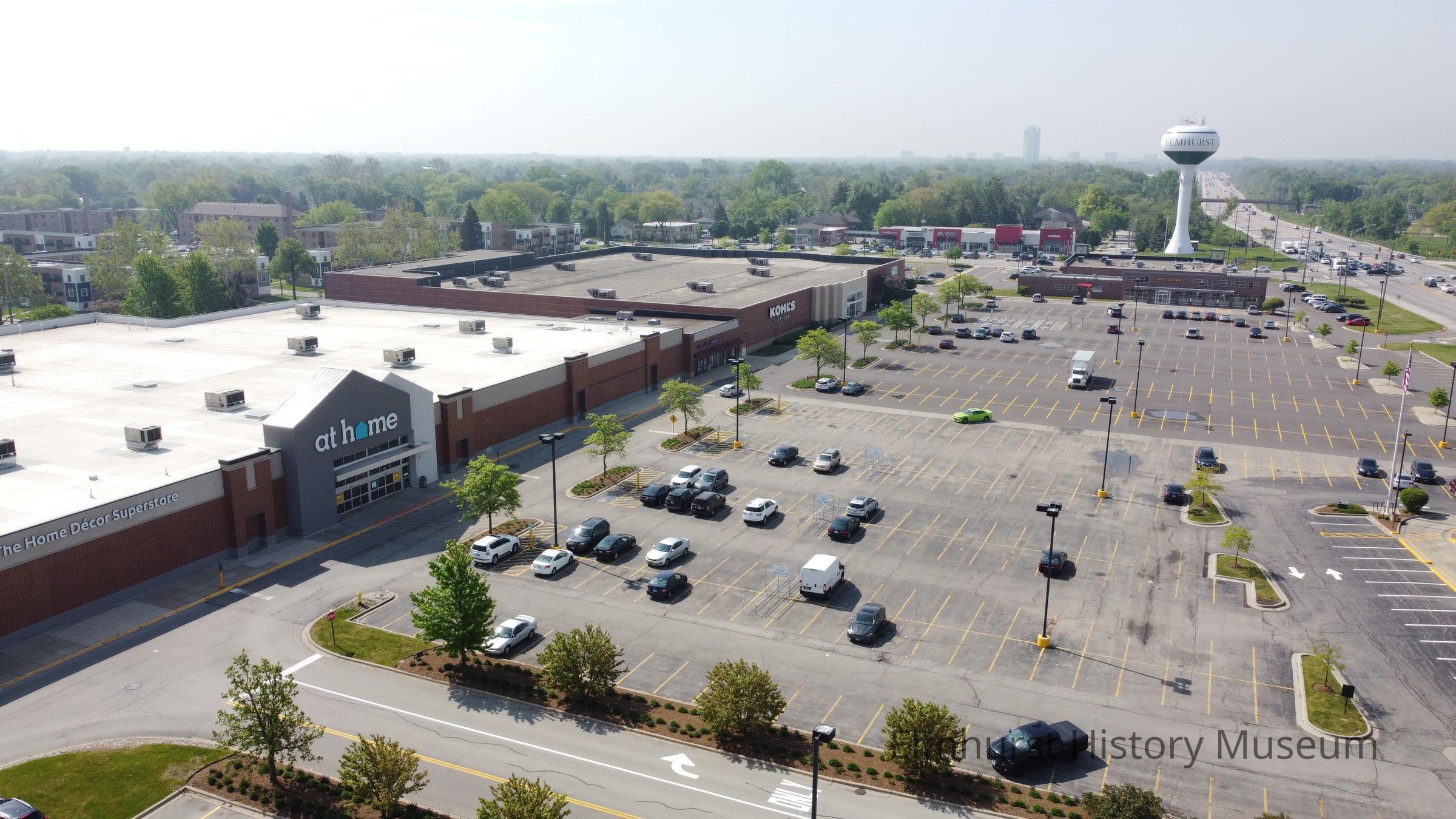 Aerial view of Elmhurst Crossing Shopping Center, looking north towards St. Charles Road.Photograph Details