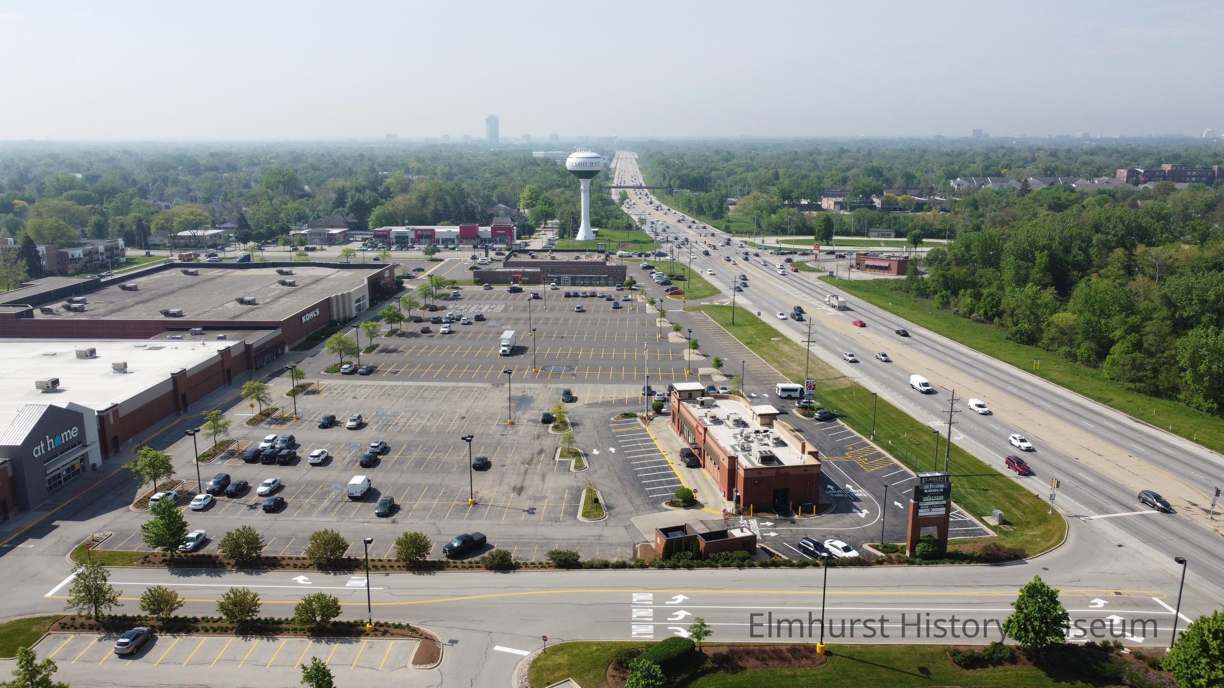 Aerial view of Elmhurst Crossing Shopping Center, looking north.Photograph Details