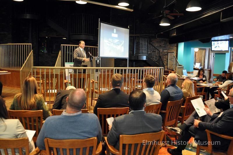Mayor Steve Morley speaks at the Elmhurst Economic Development Forum, an annual meeting of city officials and real estate professionals, at Throw Nation bar at 630 W. Lake Street.Photograph Details