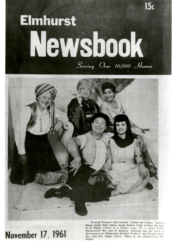 Elmhurst Evening Woman's Club "Follow the Follies" cast members on the cover of Elmhurst NewsbookPhotograph Details