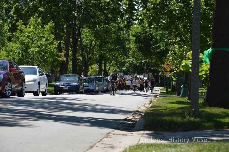 Elmhurst Family Walk for Racial Justice, a rally and protest march related to the killing of George Floyd in Minneapolis and the reaction against police brutality, marching east on Elm Park Avenue towards Wilder Park.Photograph Details