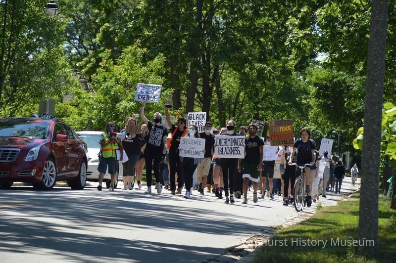 Elmhurst Family Walk for Racial Justice, a rally and protest march related to the killing of George Floyd in Minneapolis and the reaction against police brutality, marching east on Elm Park Avenue towards Wilder Park.Photograph Details
