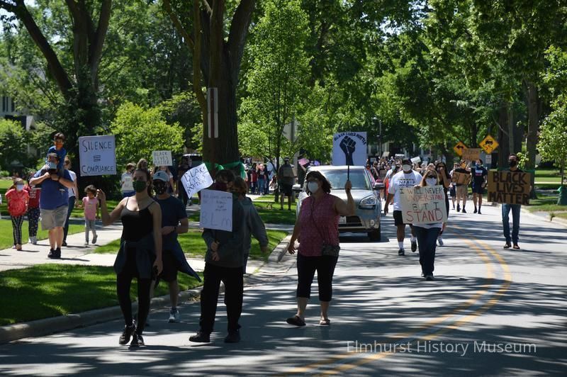 Elmhurst Family Walk for Racial Justice, a rally and protest march related to the killing of George Floyd in Minneapolis and the reaction against police brutality, marching east on Elm Park Avenue towards Wilder Park.Photograph Details