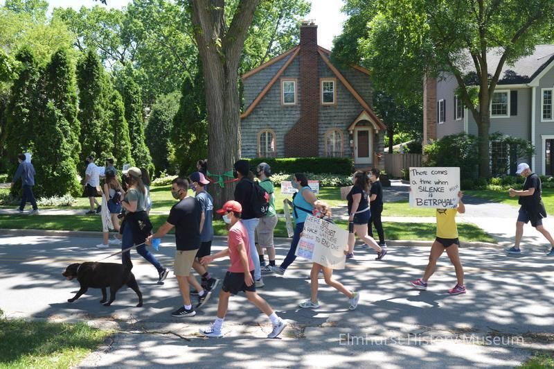 Digital photo, Elmhurst Family Walk for Racial Justice, a rally and protest march related to the killing of George Floyd in Minneapolis and the reaction against police brutality, marching east on Elm Park Avenue towards Wilder Park.Photograph Details