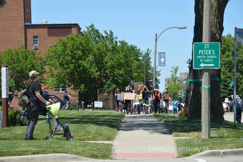 Elmhurst Family Walk for Racial Justice, a rally and protest march related to the killing of George Floyd in Minneapolis and the reaction against police brutality, marching south on S. York Street towards Church Street.Photograph Details
