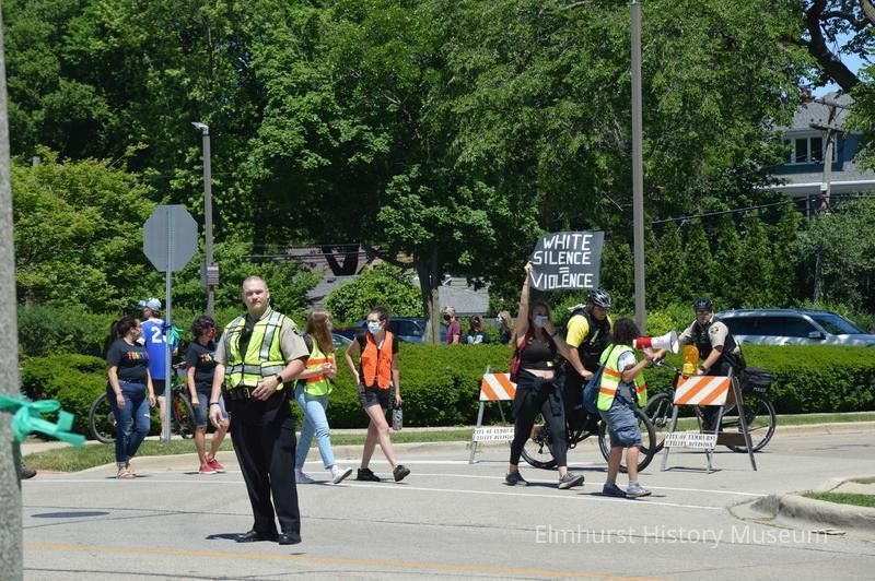 Elmhurst Family Walk for Racial Justice, a rally and protest march related to the killing of George Floyd in Minneapolis and the reaction against police brutality, marching south on S. York Street past Church Street.Photograph Details