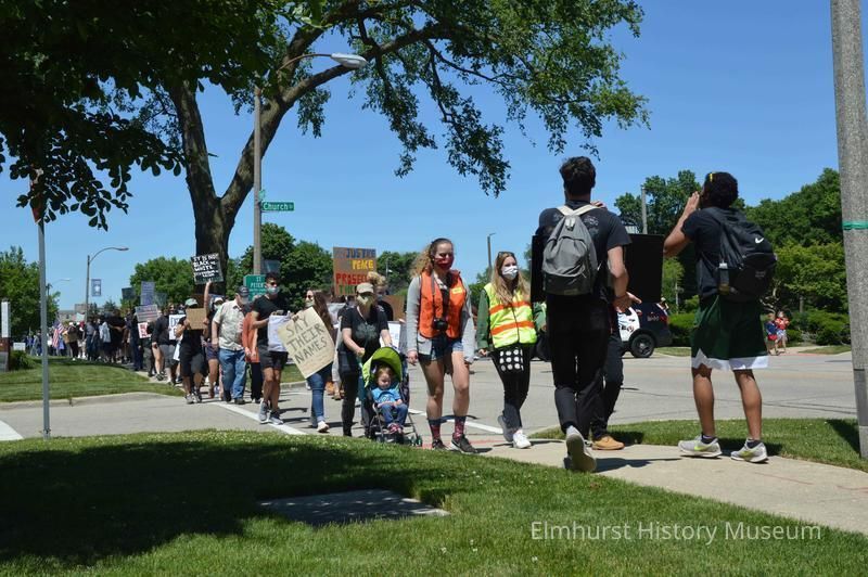 Elmhurst Family Walk for Racial Justice, a rally and protest march related to the killing of George Floyd in Minneapolis and the reaction against police brutality, marching south on S. York Street past Church Street.Photograph Details