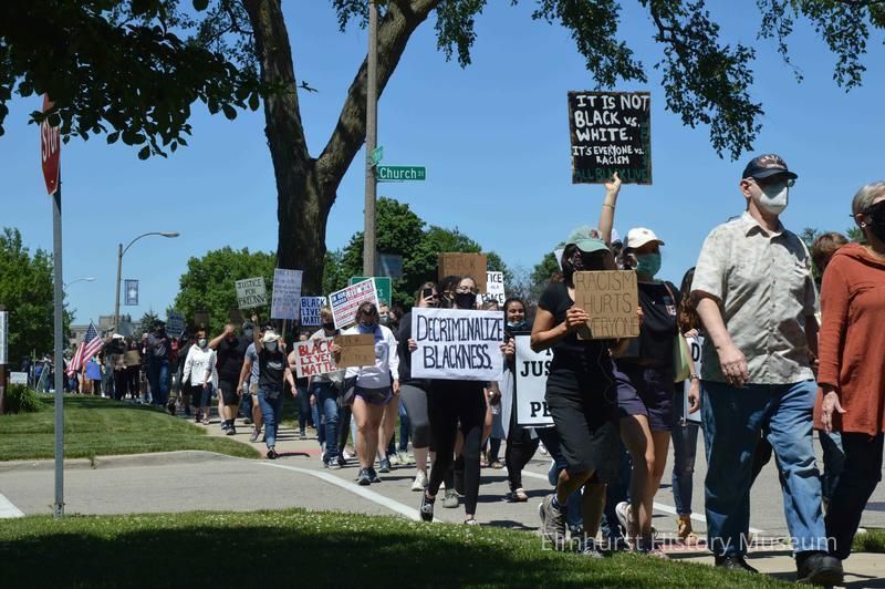 Elmhurst Family Walk for Racial Justice, a rally and protest march related to the killing of George Floyd in Minneapolis and the reaction against police brutality, marching south on S. York Street past Church Street.Photograph Details