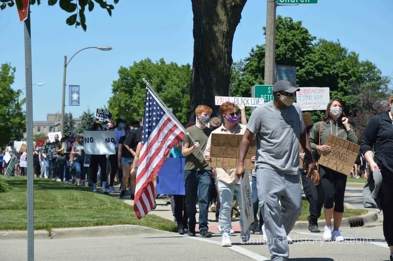 Elmhurst Family Walk for Racial Justice, a rally and protest march related to the killing of George Floyd in Minneapolis and the reaction against police brutality, marching south on S. York Street past Church Street.Photograph Details