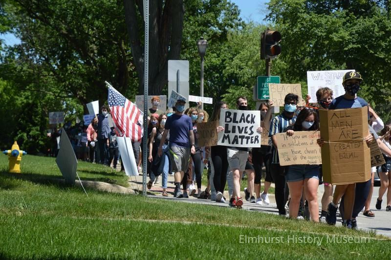 Elmhurst Family Walk for Racial Justice, a rally and protest march related to the killing of George Floyd in Minneapolis and the reaction against police brutality, marching west on St. Charles Road past Cottage Hill Avenue.Photograph Details