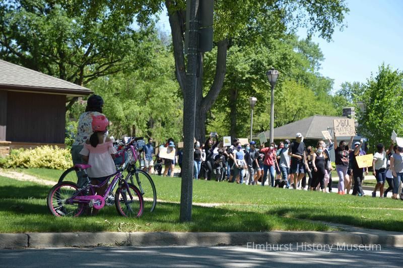 Elmhurst Family Walk for Racial Justice, a rally and protest march related to the killing of George Floyd in Minneapolis and the reaction against police brutality, marching west on St. Charles Road past Cottage Hill Avenue.Photograph Details