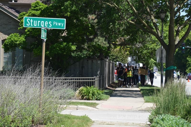 Elmhurst Family Walk for Racial Justice, a rally and protest march related to the killing of George Floyd in Minneapolis and the reaction against police brutality, marching west on St. Charles Road toward Sturges Parkway.Made/Created