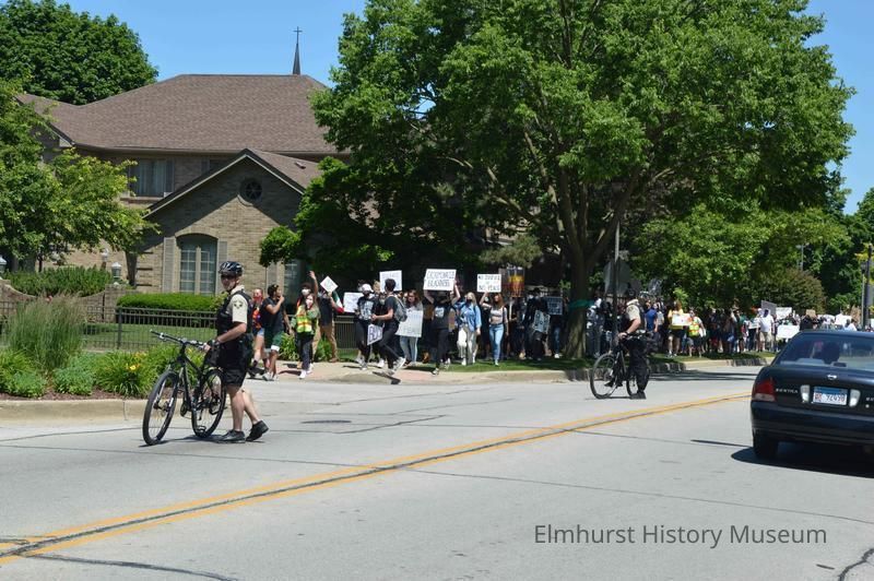 Elmhurst Family Walk for Racial Justice, a rally and protest march related to the killing of George Floyd in Minneapolis and the reaction against police brutality, marching west on St. Charles Road toward Sturges Parkway.Photograph Details