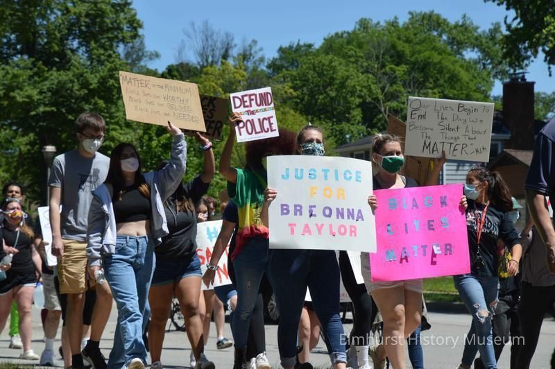 Elmhurst Family Walk for Racial Justice, a rally and protest march related to the killing of George Floyd in Minneapolis and the reaction against police brutality, marching west on St. Charles Road past Cottage Hill Avenue.Photograph Details