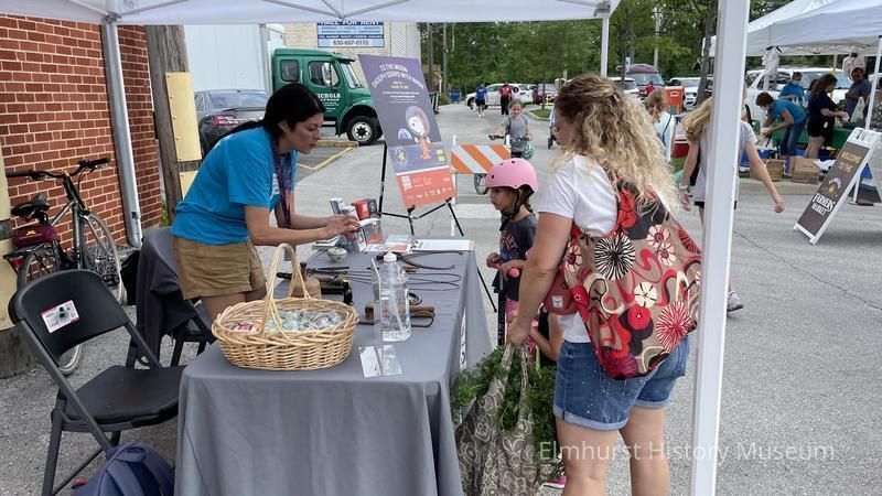 Elmhurst History Museum tent at the Elmhurst Farmers Market on Vallette Street just east of York Street, sponsored by the York and Vallette Business District.Photograph Details