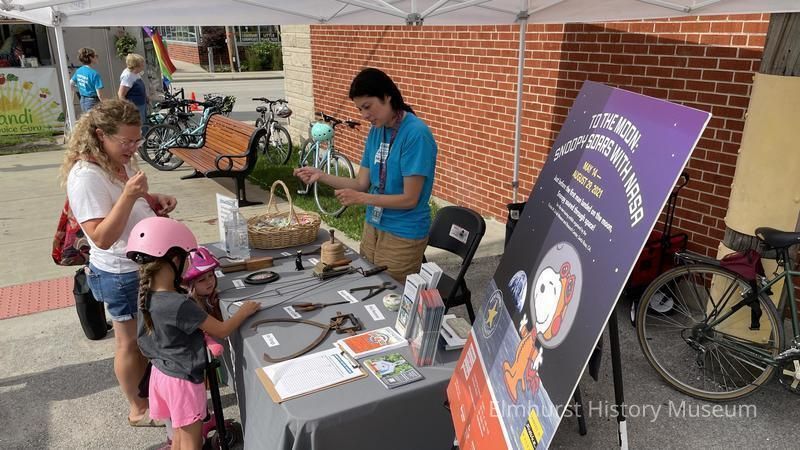 Elmhurst History Museum tent at the Elmhurst Farmers Market on Vallette Street just east of York Street, sponsored by the York and Vallette Business District.Photograph Details