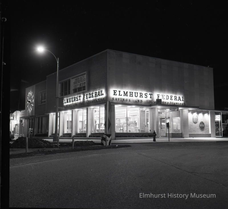 Night view of the Elmhurst Federal Savings and Loan Association building, 100 N. Addison AvenuePhotograph Details