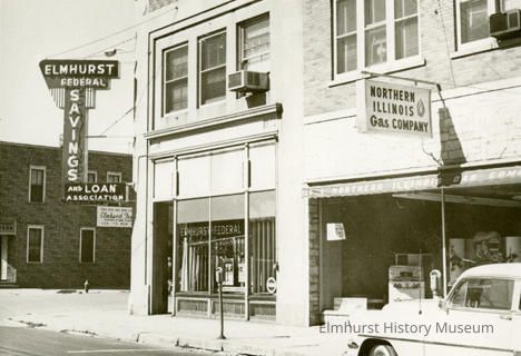View of Elmhurst Federal Savings & Loan Association at 131 W. First Street and Northern Illinois Gas Company offices at 129 W. First Street.Photograph Details