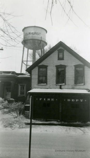Frame Elmhurst Fire Station at 116 Schiller Street. This building was the first Elmhurst City Hall circa 1910.Photograph Details