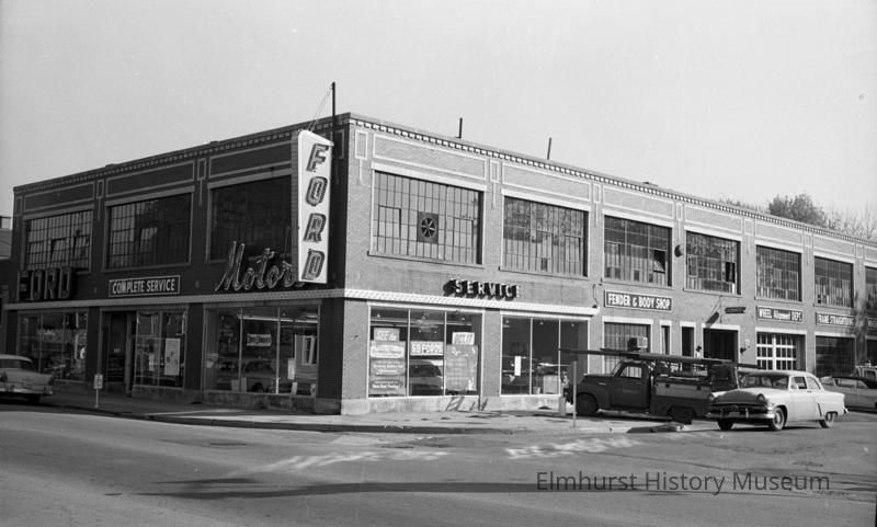 Service department at Elmhurst Ford dealership, also known as Elmhurst Motors, at 183 N. York Street, facing northeast.Photograph Details