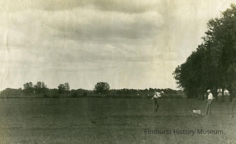 Golfers on the 5th tee at Elmhurst Golf Club. The 9-hole, 70-acre golf course, which opened in 1900, reached from Grace Avenue west to West Avenue and from Elm Park Avenue north to Alexander Boulevard.Photograph Details