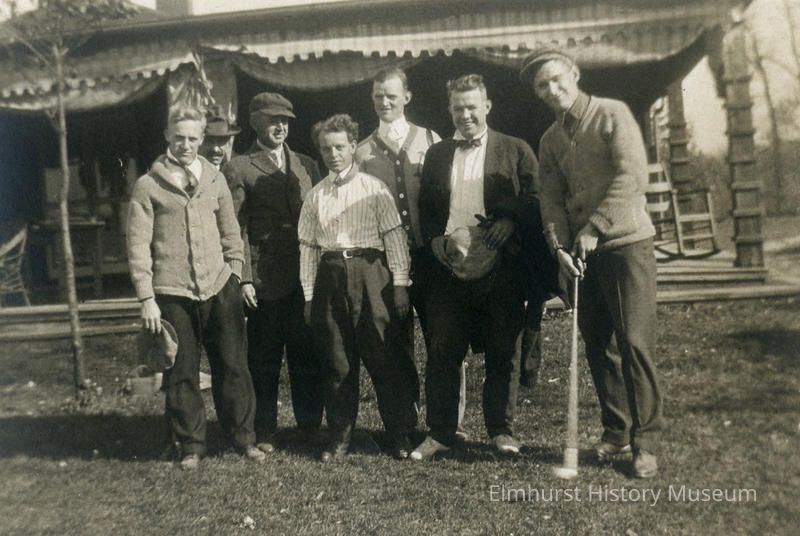 Members of the Elmhurst Golf Club with the clubhouse in the background.Photograph Details