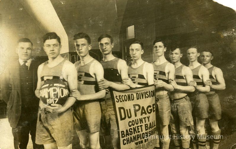 Elmhurst High School basketball team, 1917, DuPage County Second Division basketball champions.