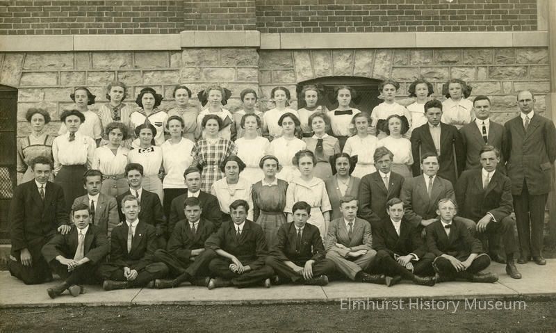 Elmhurst High School classes in front of the old Hawthorne School building at Arthur Street and Cottage Hill Avenue.Photograph Details
