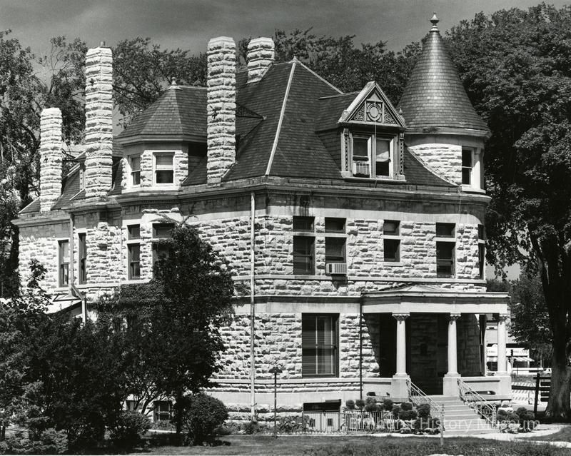 Written on back in black: Glos Mansion / Elmhurst ILL. / July 1977 Written on the back in blue ink: Elmhurst Historical Museum / Entry Photo Contest Summer 1977 Photographer name and address stamped on back: Gordon Beckmann / 145 Haven