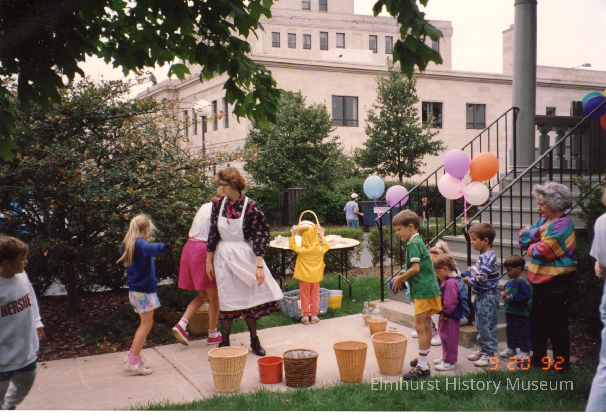 Elmhurst Historical Museum family event on the museum grounds. The bank building at 105 S. York Street is in the background.Photograph Details