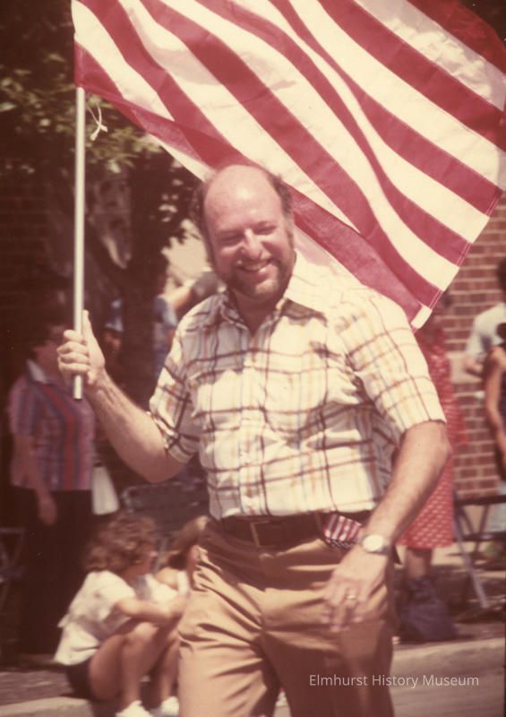 Mayor Abner Ganet holding a flag at the Independence Day Parade.