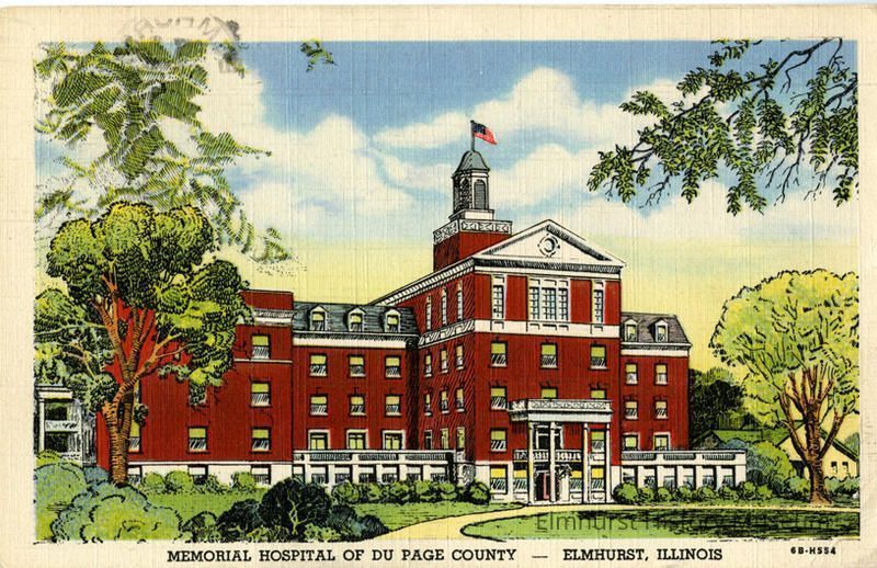 Postcard with colored drawing of "Memorial Hospital of DuPage County, Elmhurst, Illinois"Photograph Details