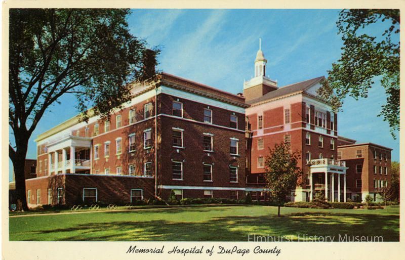 Color postcard. Memorial Hospital of DuPage County on Schiller Street and Avon Road in ElmhurstPhotograph Details