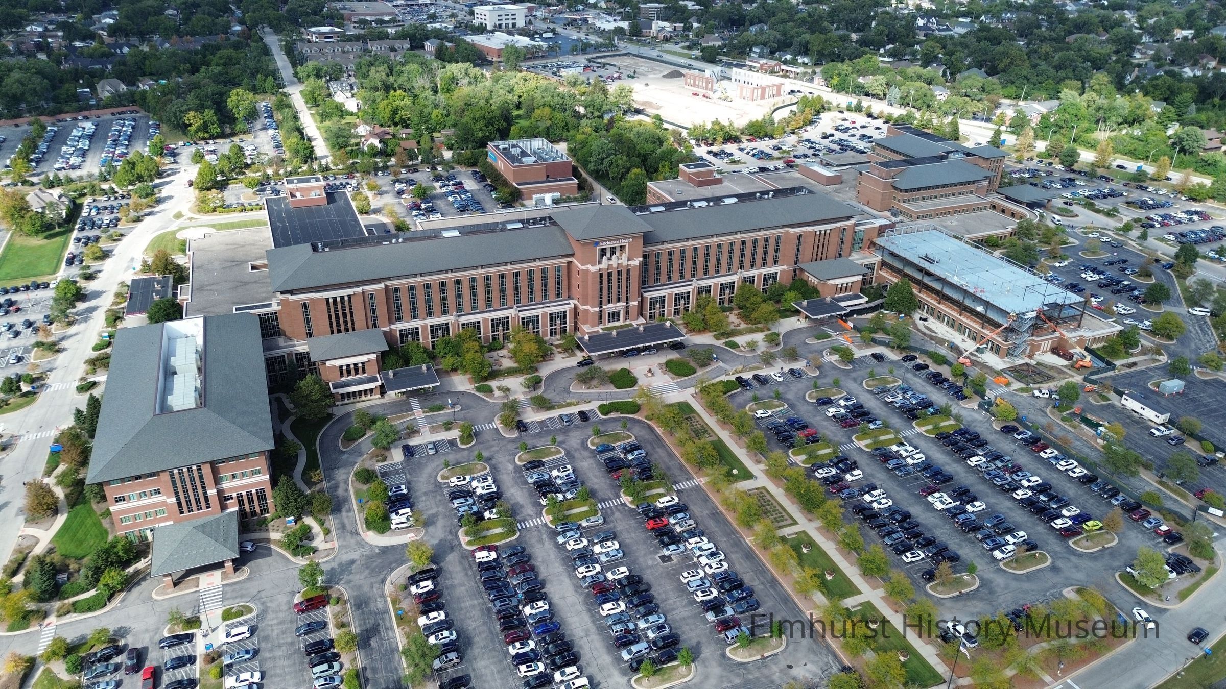 Aerial view of Elmhurst Memorial Hospital, looking northeast.