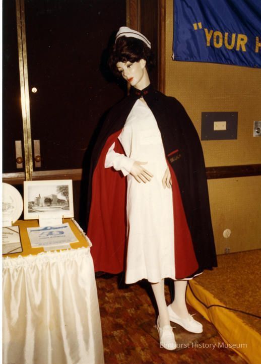 Elmhurst Memorial Hospital 50th Anniversary display. Mannequin is wearing a uniform from the nursing schoolPhotograph Details