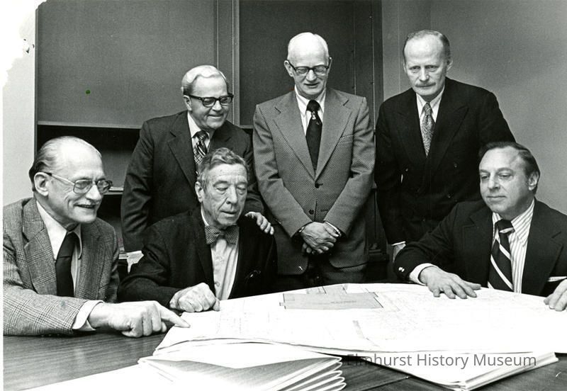 Members of the Elmhurst Memorial Hospital Board looking at building plans